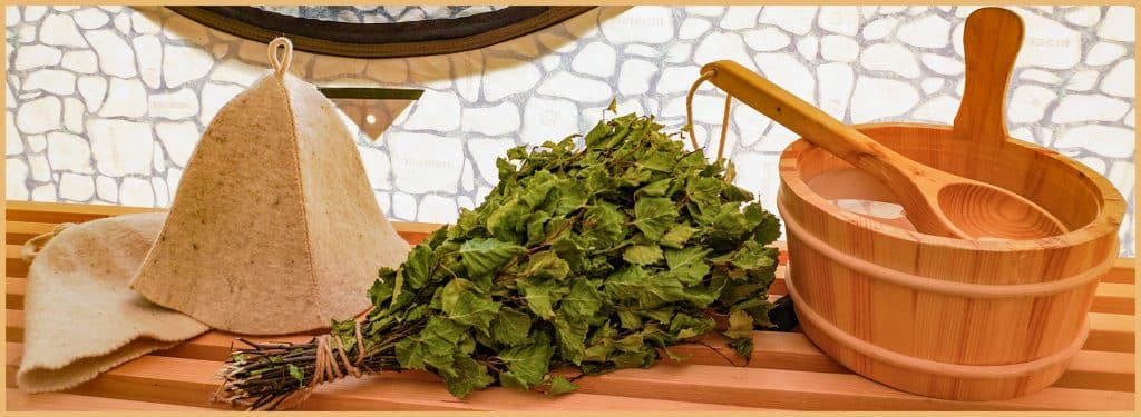 Der Birkenwedel wird in warmem Wasser eingelegt, damit die ätherischen Öle freigesetzt werden, er schön weich wird und sich das angenehme Birkenaroma im Schwitzraum verteilt.